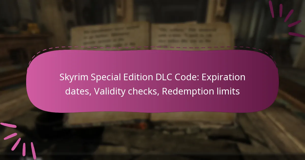 To verify the validity of your Skyrim Special Edition DLC code, you need to check its expiration date, ensure it has not been redeemed, and confirm it is compatible with your platform. This process helps prevent issues when trying to redeem the code.